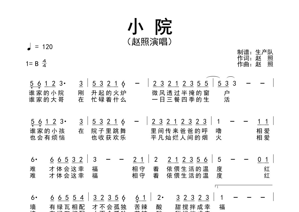 赵照《小院》简谱 - 原版简谱