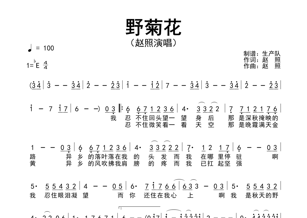 赵照《野菊花》简谱 - 原版简谱