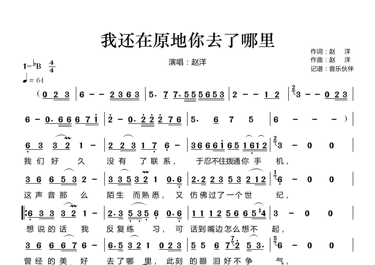 我还在原地你去了哪里简谱 - 赵洋演唱