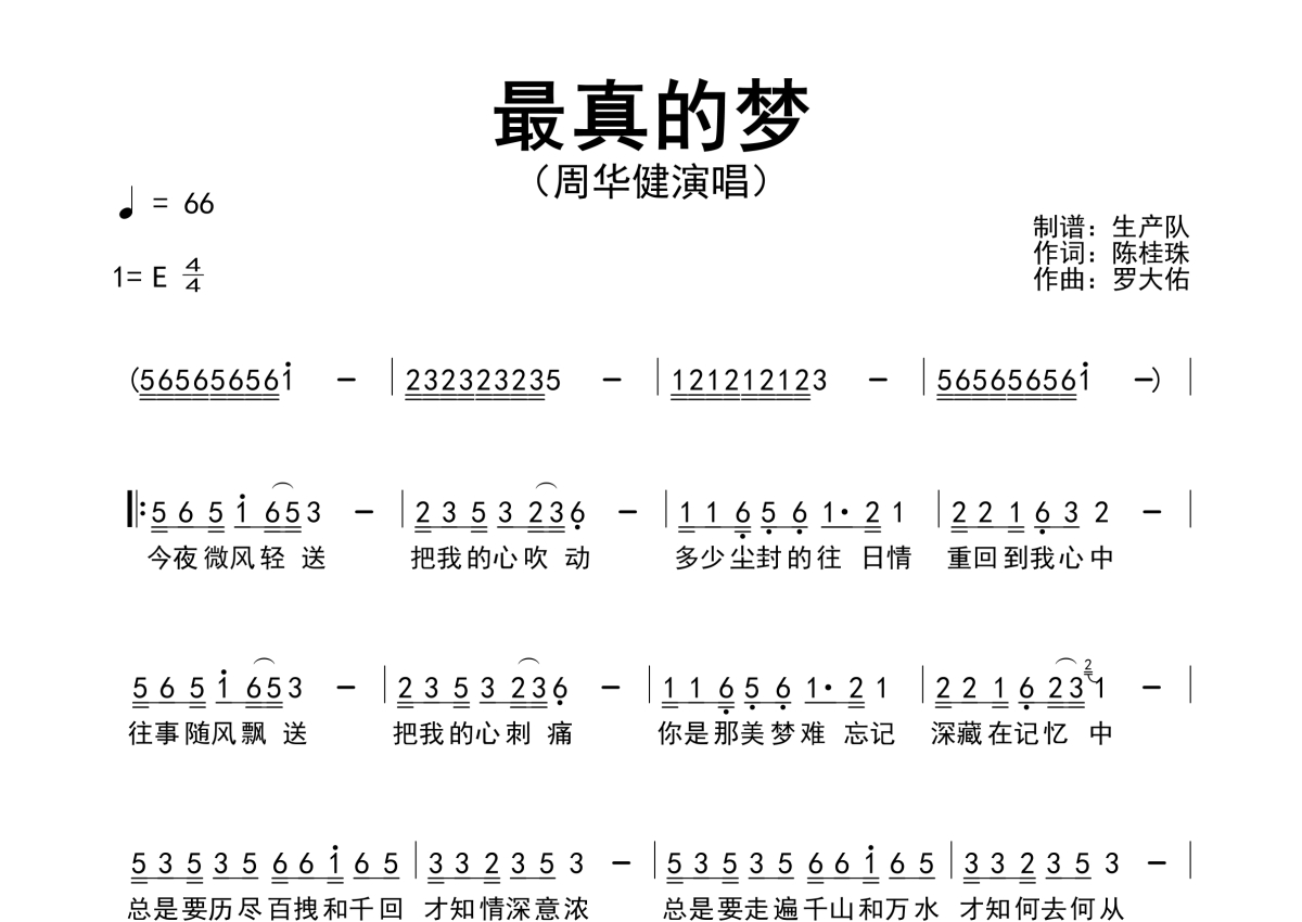 《最真的梦》是周华健演唱的一首歌曲,原版简谱,拍号为4/4拍,歌曲速度为每分钟66拍,这份简谱共有一张高清图谱,图谱由 @生产队 编配上传周华健演唱的经典歌曲《最真的梦》原版简谱。