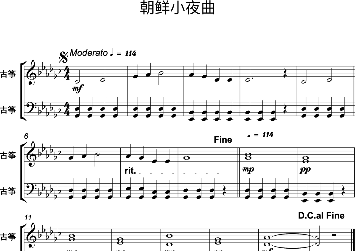 唏嘘感慨《朝鲜小夜曲》古筝谱