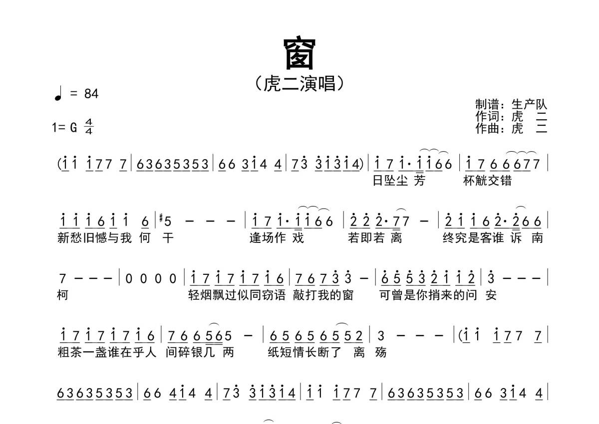 虎二《窗》简谱 - 原版简谱