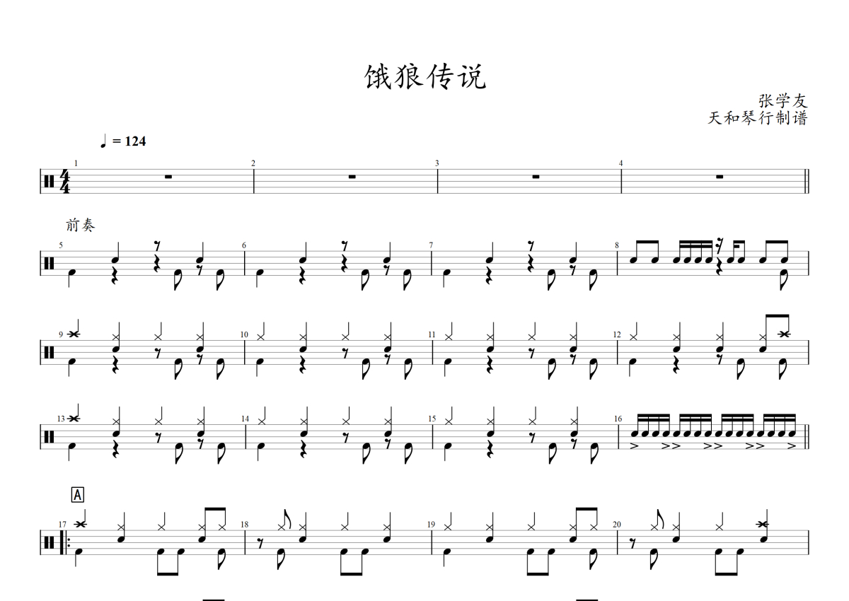 张学友《饿狼传说》架子鼓谱