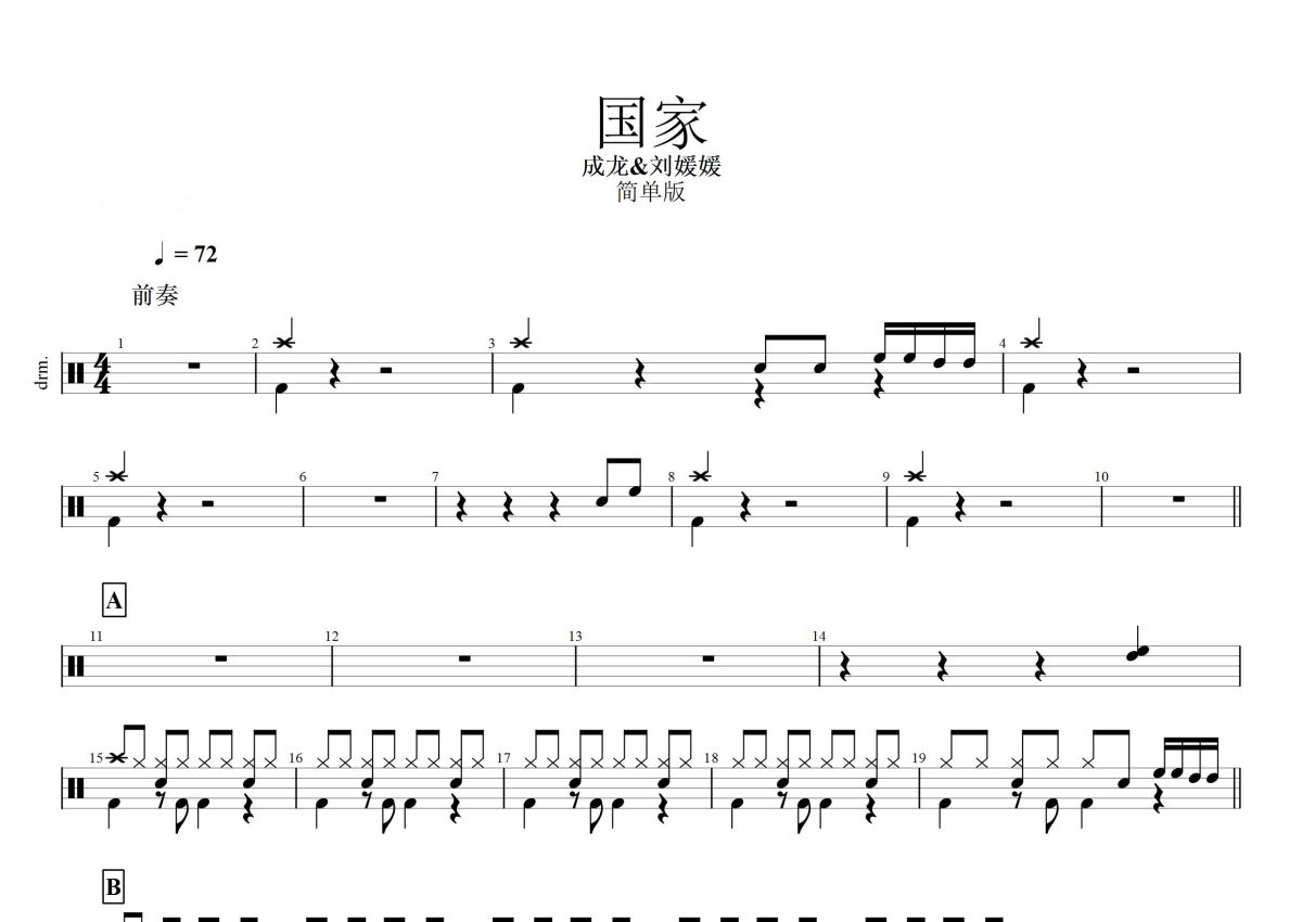 成龙/刘媛媛《国家》鼓谱 - 架子鼓谱