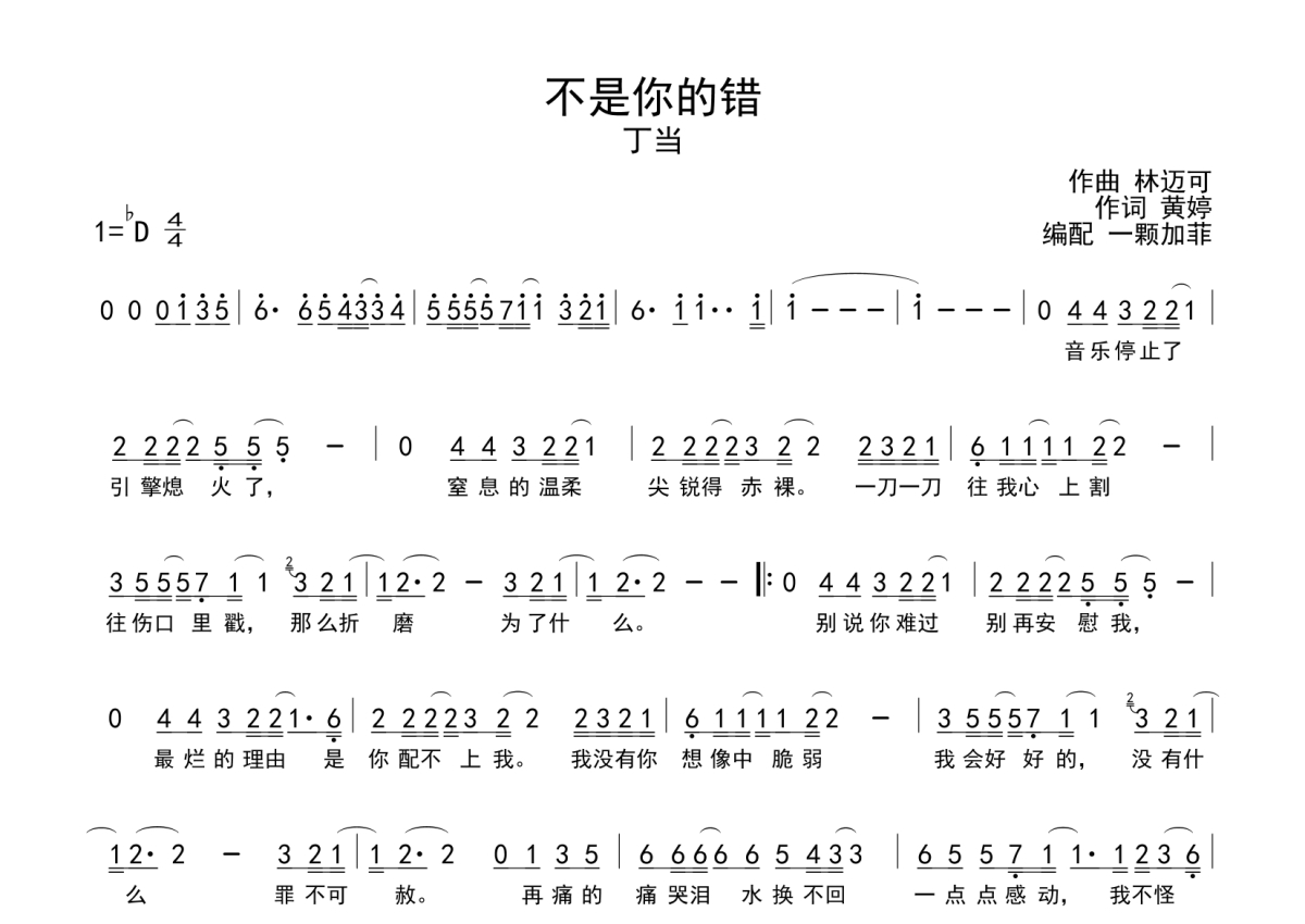 《不是你的错》是丁当演唱的一首歌曲,这份简谱共有一张高清图谱,图谱由 @一颗加菲 编配上传。