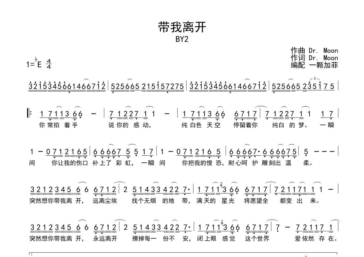 BY2《带我离开》简谱