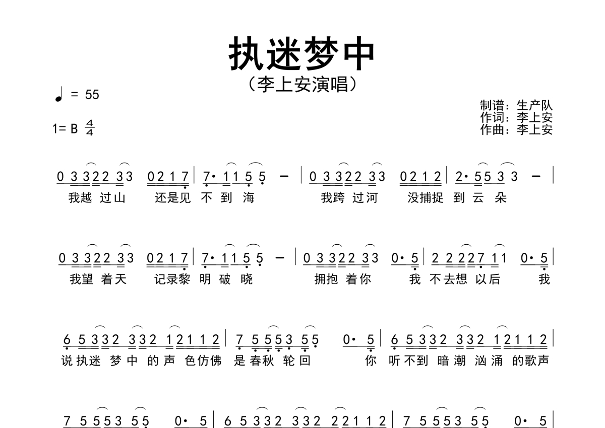 李上安《执迷梦中》简谱 - 原版简谱
