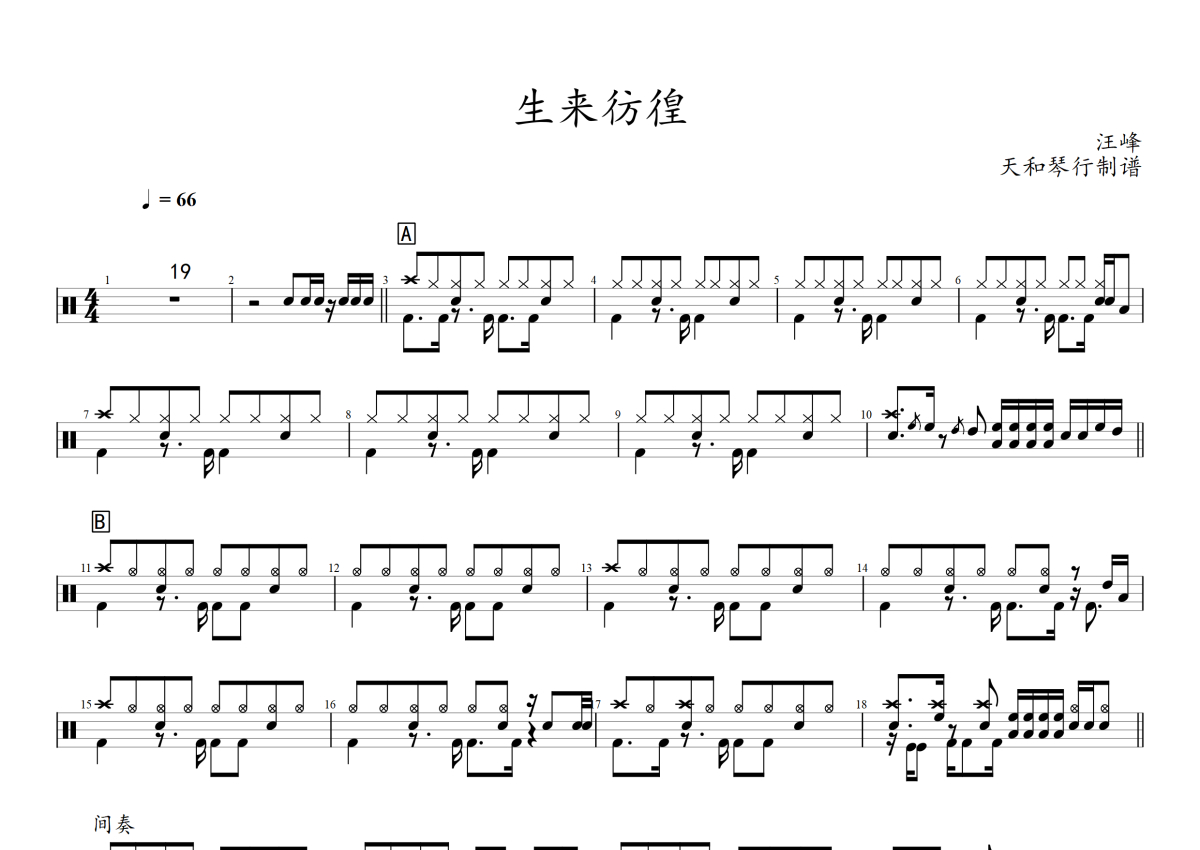 汪峰《生来彷徨》架子鼓谱