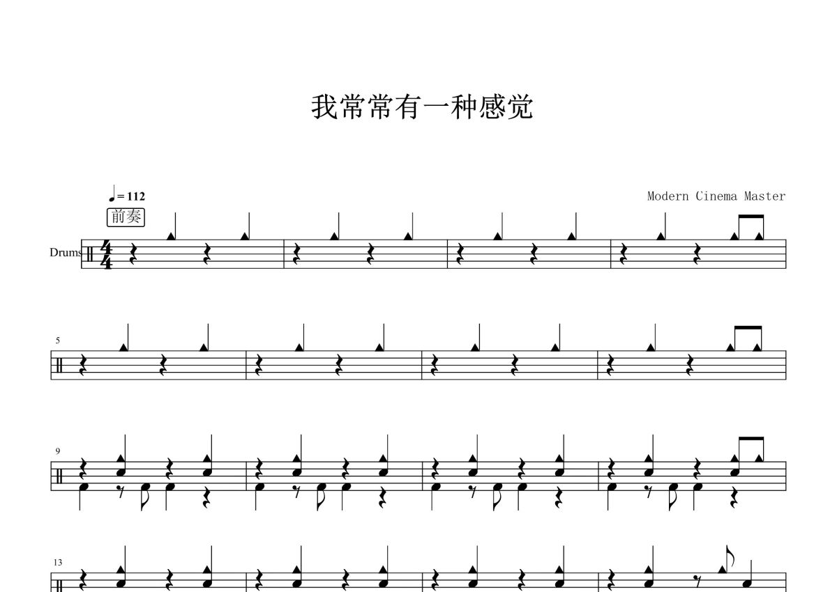 当代电影大师《我常常有一种感觉》鼓谱 - 架子鼓谱