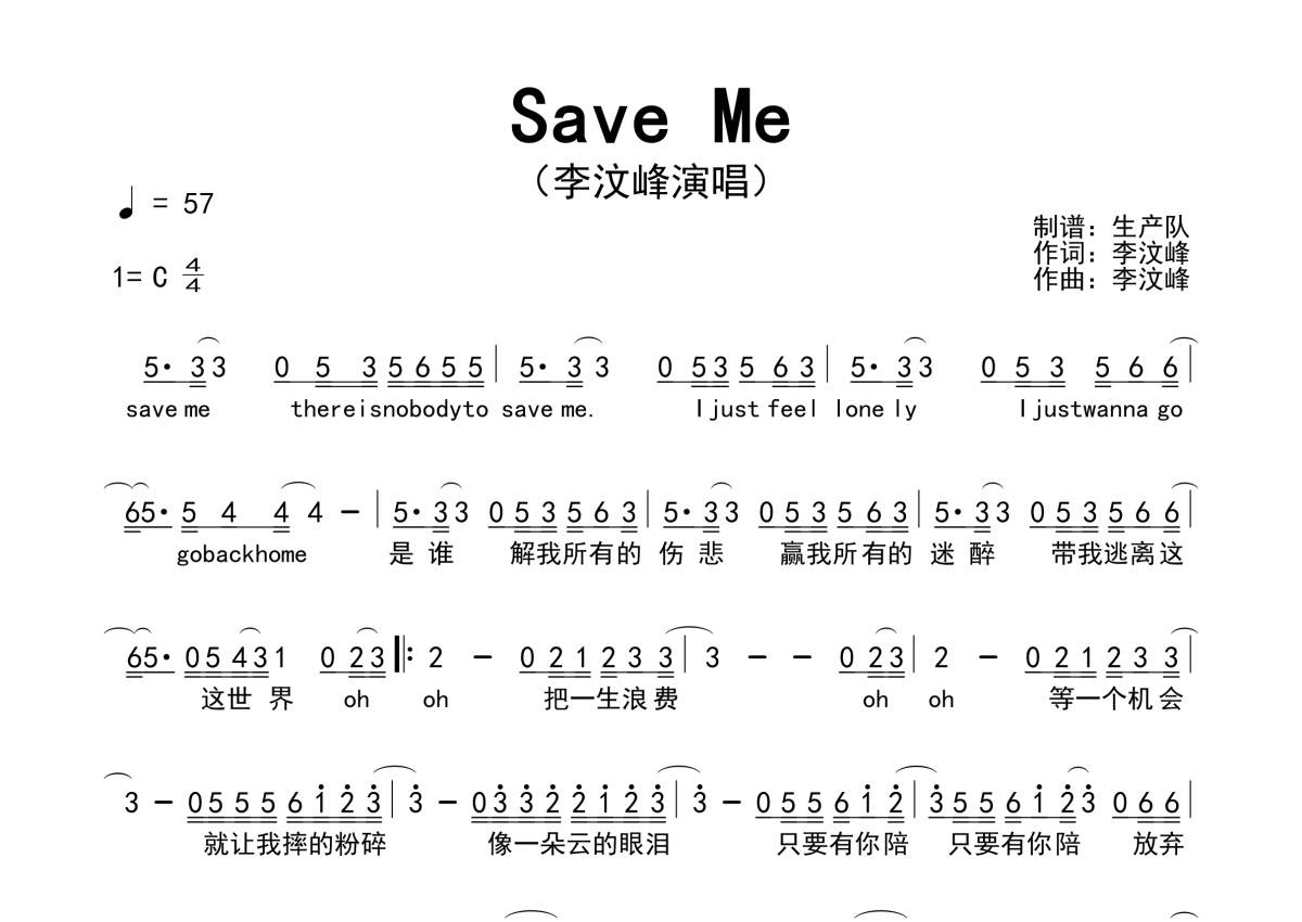 《Save Me》是李汶峰演唱的一首歌曲,原版简谱,拍号为4/4拍,歌曲速度为每分钟57拍,这份简谱共有一张高清图谱,图谱由 @生产队 编配上传李汶峰演唱的歌曲《Save Me》原版简谱。