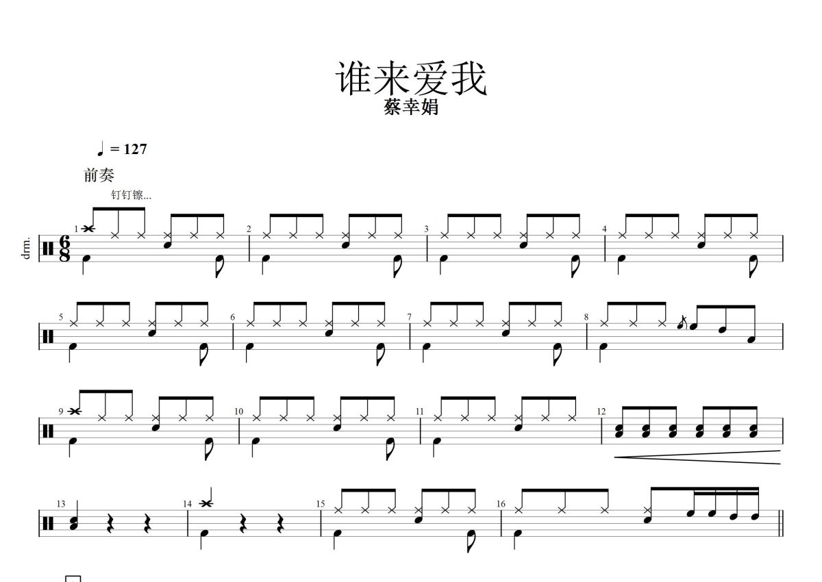 蔡幸娟《谁来爱我》鼓谱 - 架子鼓谱