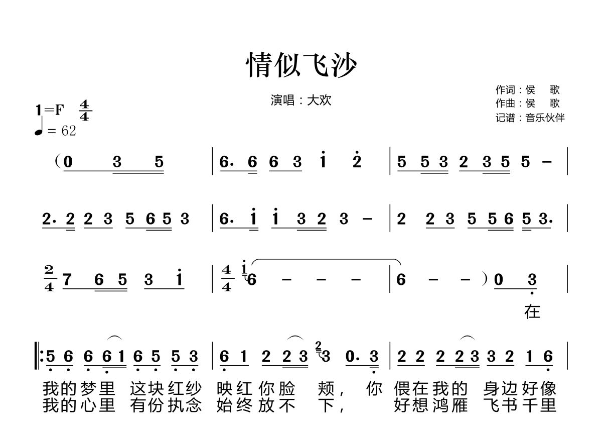 《情似飞沙》是大欢演唱的一首歌曲,这份简谱共有两张高清图谱,图谱由 @音乐伙伴 编配上传。