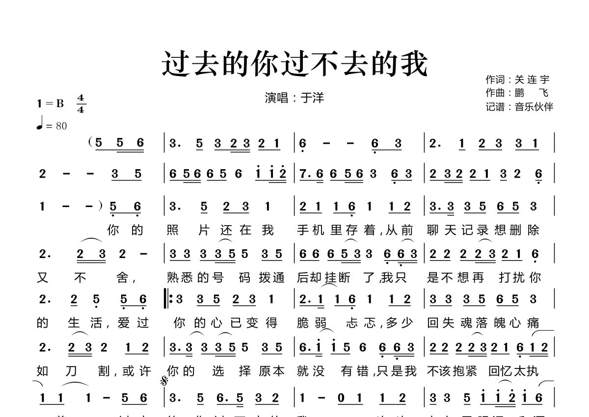 《过去的你过不去的我》是于洋演唱的一首歌曲,这份简谱共有一张高清图谱,图谱由 @音乐伙伴 编配上传。