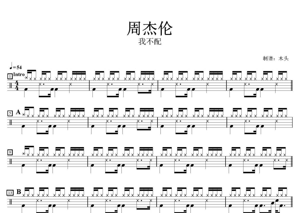 周杰伦《我不配》鼓谱 - 架子鼓谱
