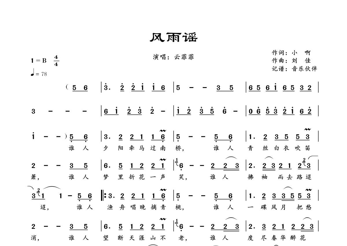 云菲菲《风雨谣》简谱