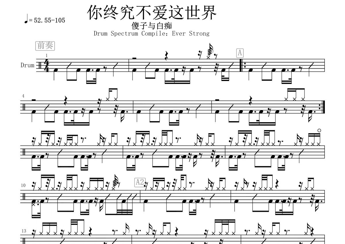 傻子与白痴《你终究不爱这世界》鼓谱 - 架子鼓谱 - 现场版