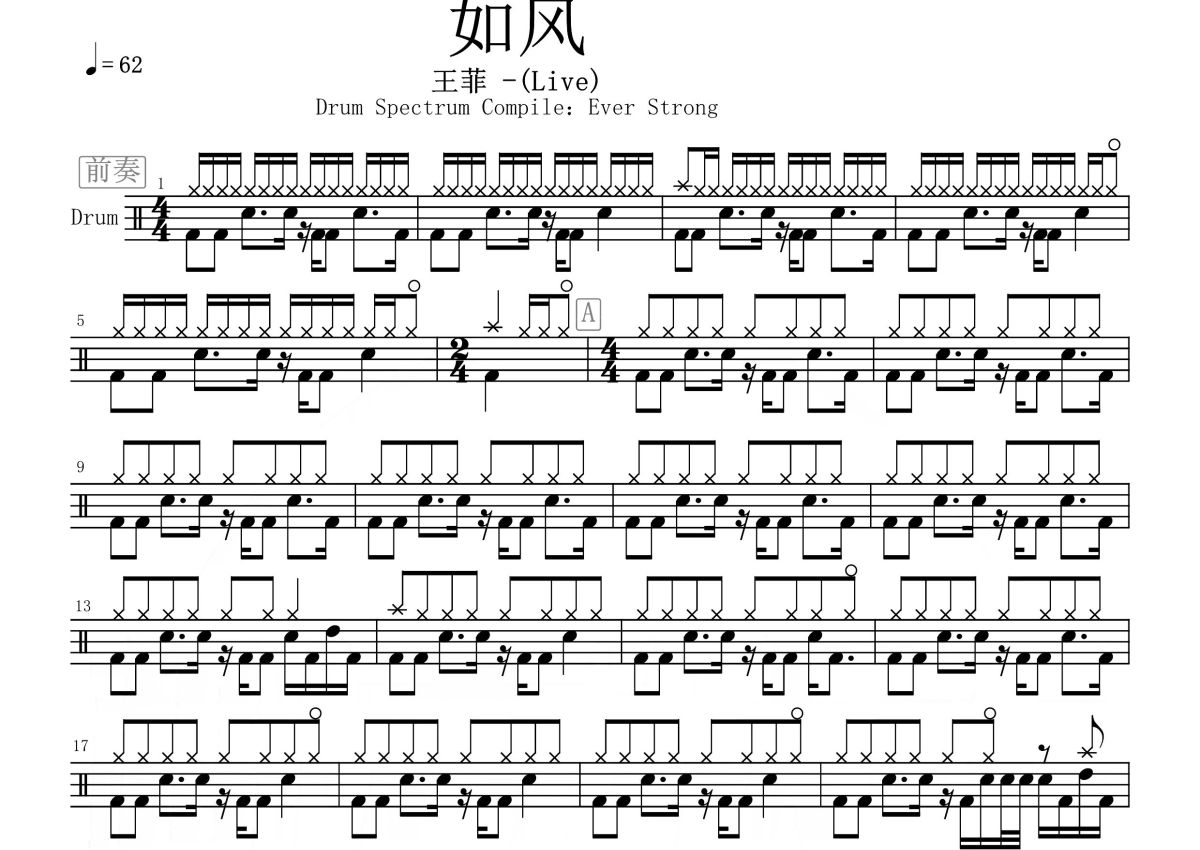王菲《如风》鼓谱 - 架子鼓谱