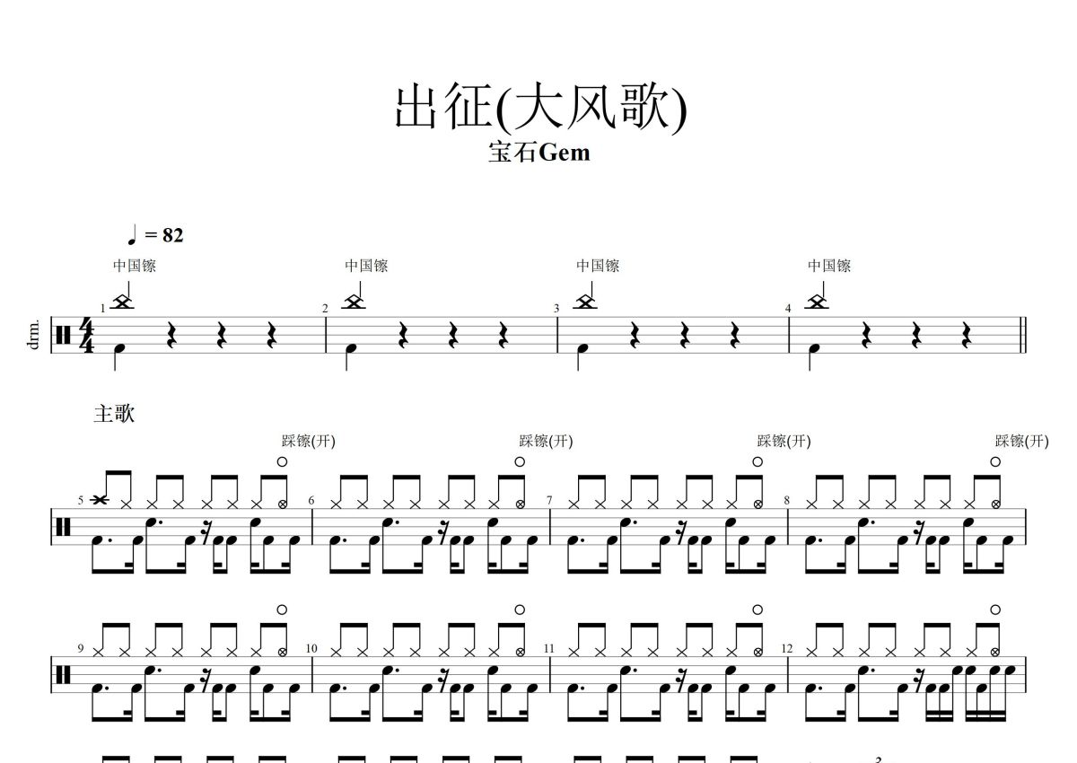 宝石Gem《出征》鼓谱 - 架子鼓谱