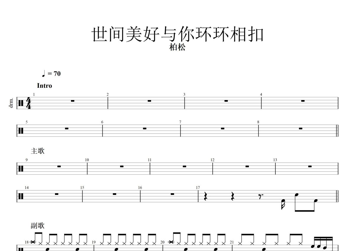 柏松《世间美好与你环环相扣》鼓谱 - 架子鼓谱