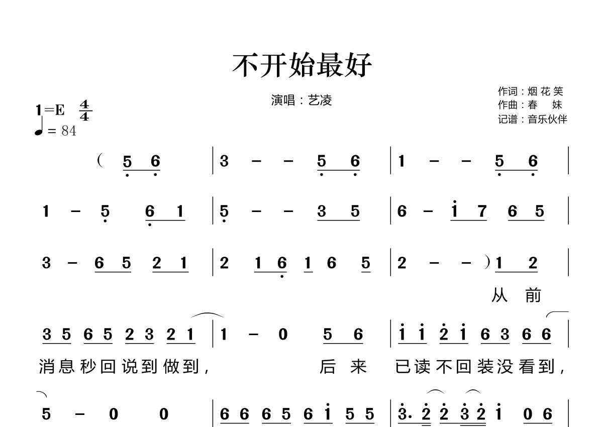 不开始最好简谱 - 艺凌演唱