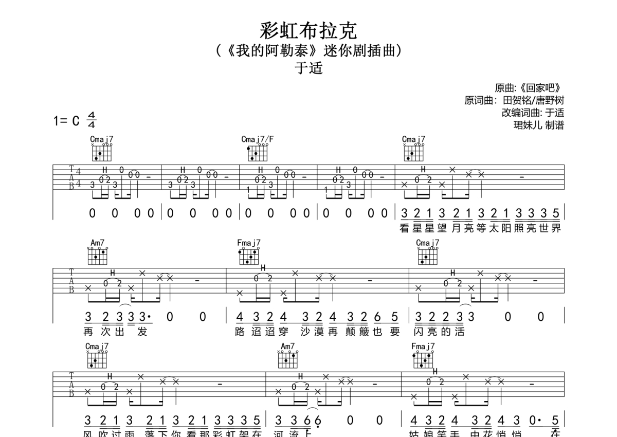 于适《彩虹布拉克》吉他谱 - C调弹唱六线谱