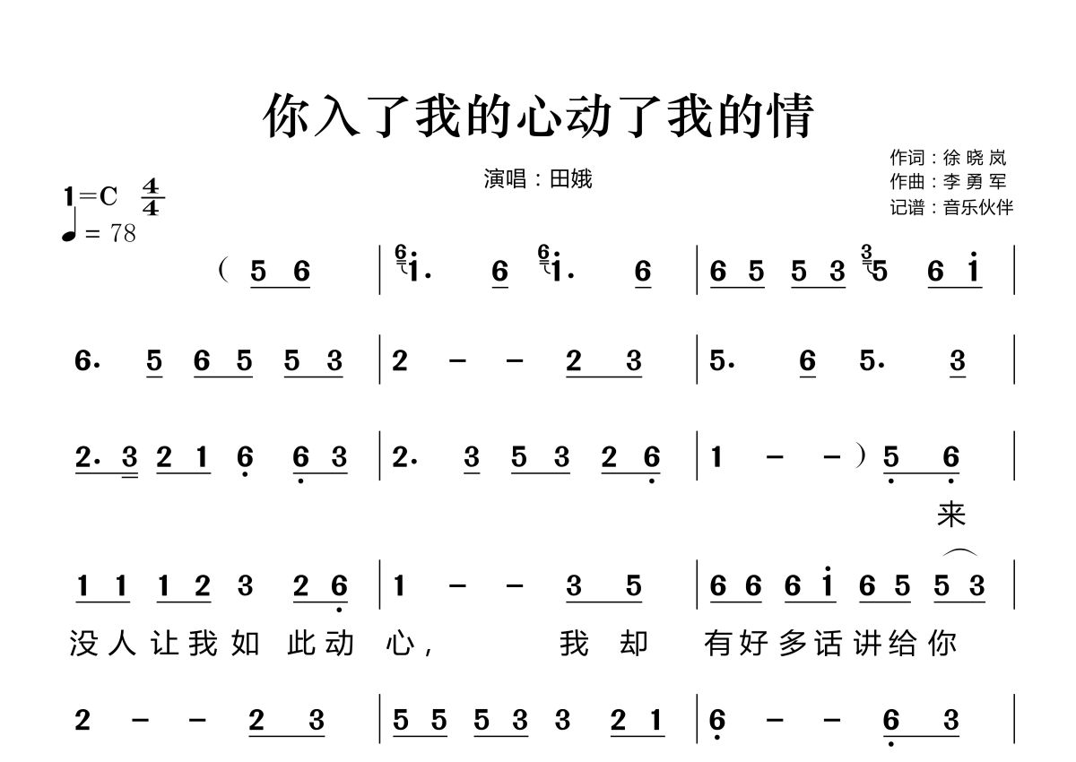 《你入了我的心动了我的情》是田娥演唱的一首歌曲,这份简谱共有两张高清图谱,图谱由 @音乐伙伴 编配上传。