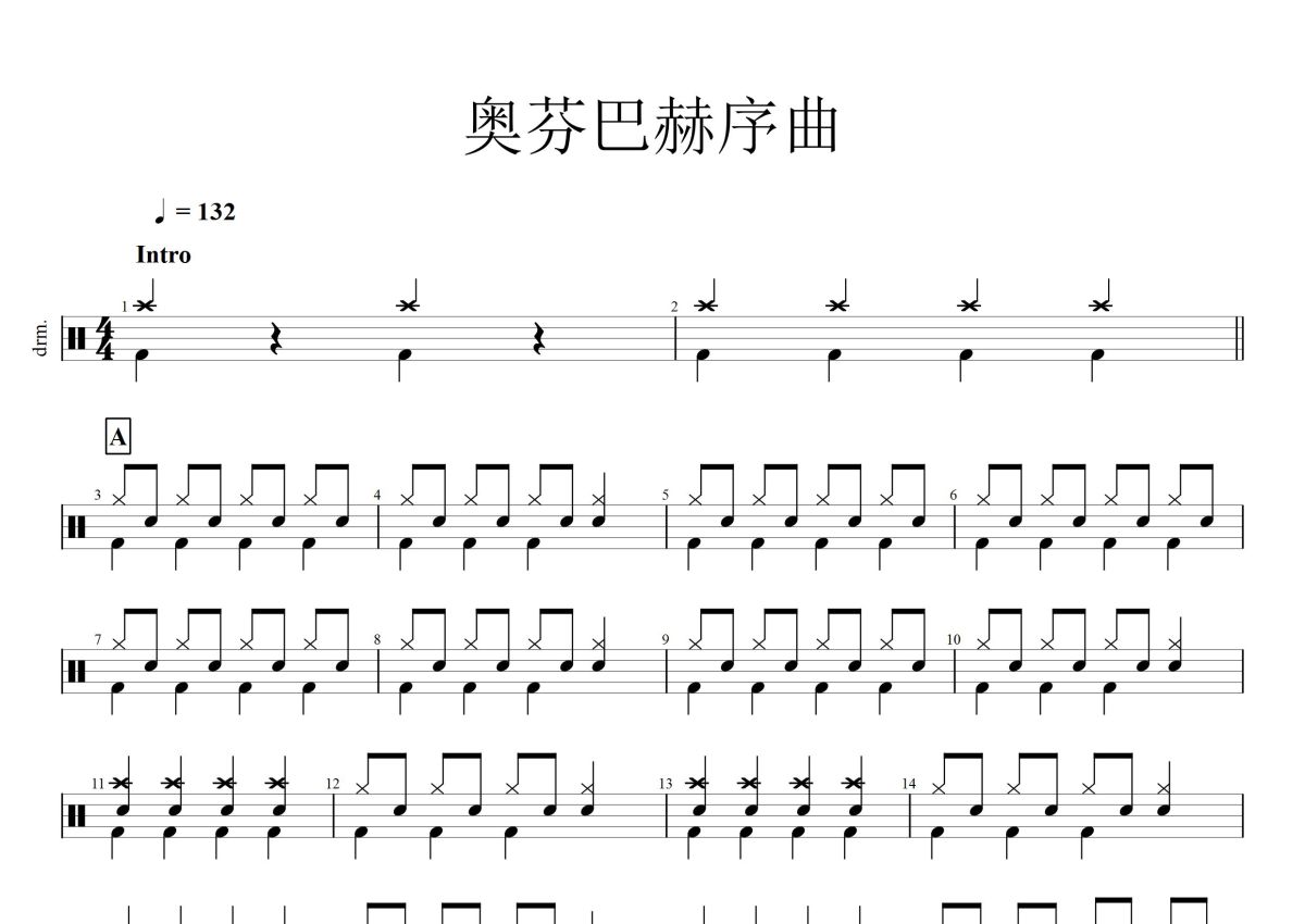 奥芬巴赫《奥芬巴赫序曲》鼓谱 - 架子鼓谱