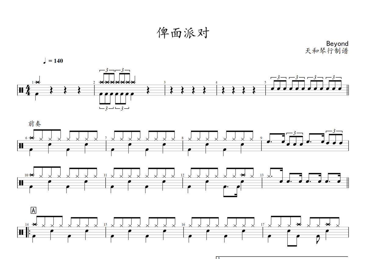 《俾面派对》是Beyond演唱的一首歌曲,拍号为4/4拍,歌曲速度为每分钟140拍,这份架子鼓谱共有两张高清图谱,图谱由 @音符喷血者 编配上传,图谱使用五线谱编配,使用这份俾面派对架子鼓谱,你将能够轻松地敲打出这首Beyond的俾面派对,快来尝试吧。
