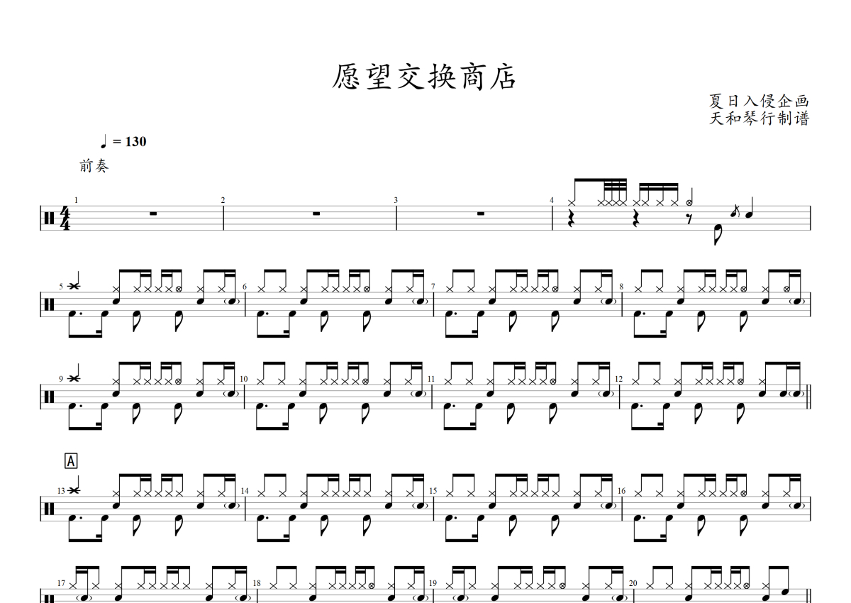 夏日入侵企画《愿望交换商店》架子鼓谱