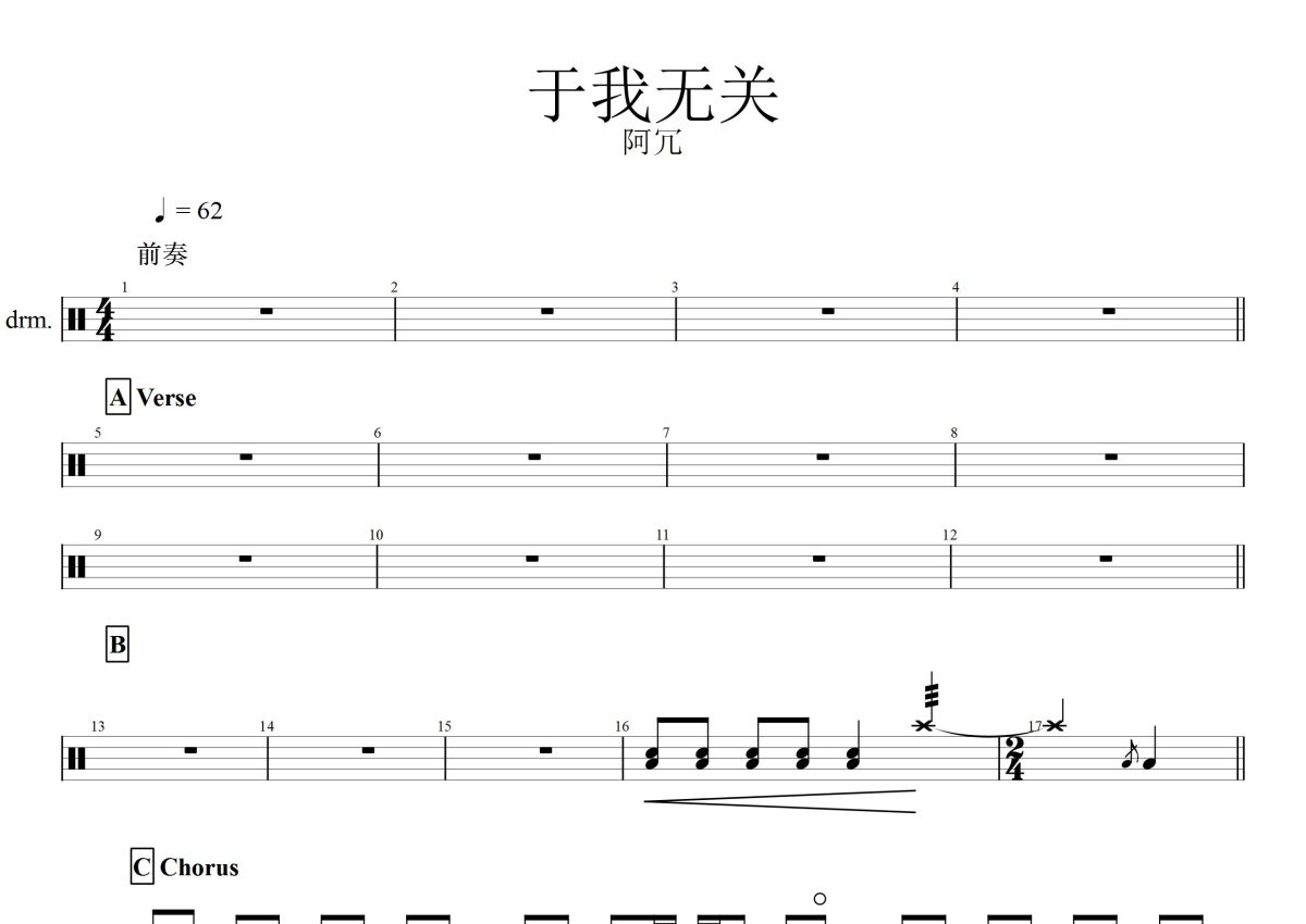 阿冗《于我无关》鼓谱 - 架子鼓谱