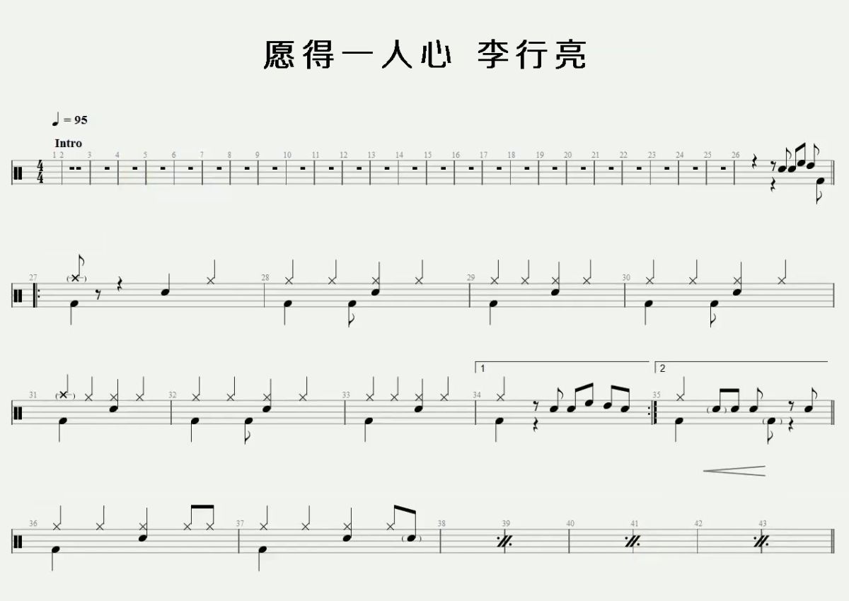 李行亮《愿得一人心》鼓谱 - 架子鼓谱