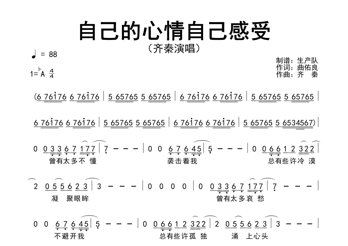 齐秦《自己的心情自己感受》简谱 - 原版简谱