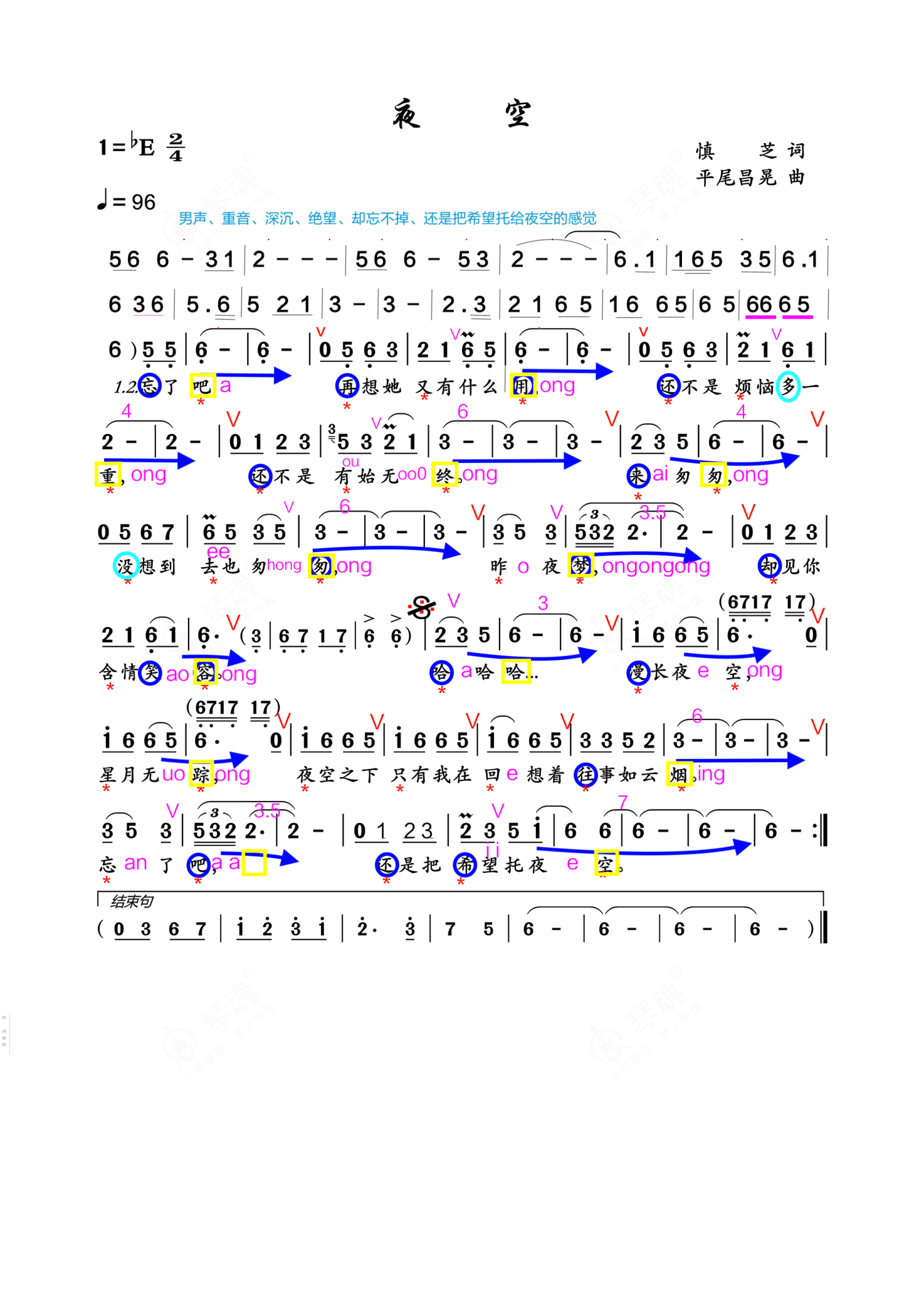 《夜空》是dafeng演唱的一首歌曲,拍号为2/4拍,这份简谱共有一张高清图谱,图谱由 @琴魂用户_211792 编配上传。