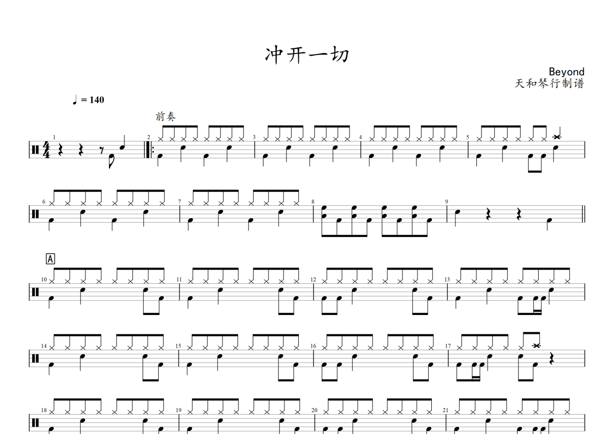 Beyond《冲开一切》架子鼓谱