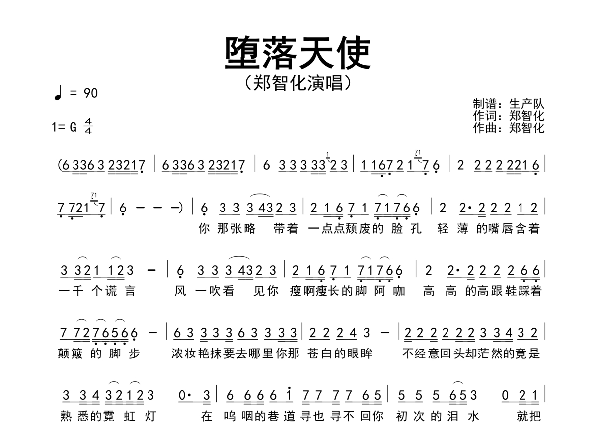 《堕落天使》是郑智化演唱的一首歌曲,原版简谱,拍号为4/4拍,歌曲速度为每分钟90拍,这份简谱共有一张高清图谱,图谱由 @生产队 编配上传郑智化演唱经典歌曲《堕落天使》原版简谱。