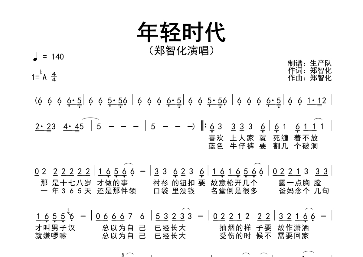 《年轻时代》是郑智化演唱的一首歌曲,原版简谱,拍号为4/4拍,歌曲速度为每分钟140拍,这份简谱共有一张高清图谱,图谱由 @生产队 编配上传郑智化演唱经典歌曲《年轻时代》原版简谱。