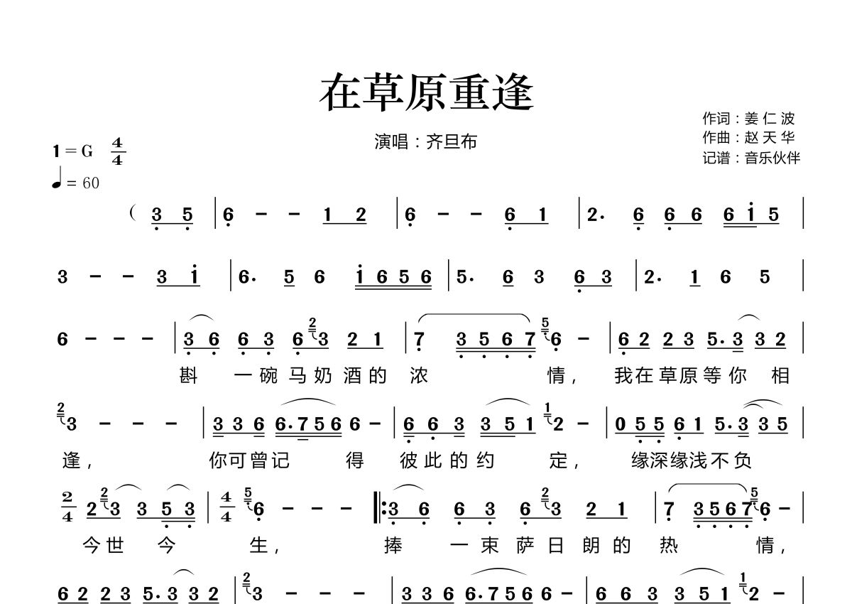 《在草原重逢》是齐旦布演唱的一首歌曲,这份简谱共有一张高清图谱,图谱由 @音乐伙伴 编配上传。