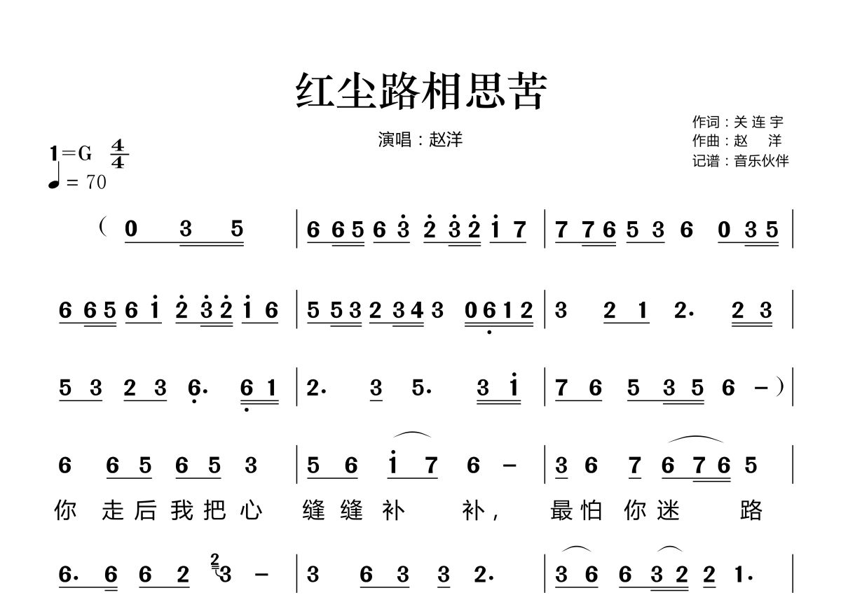 《红尘路相思苦》是赵洋演唱的一首歌曲,这份简谱共有两张高清图谱,图谱由 @音乐伙伴 编配上传。