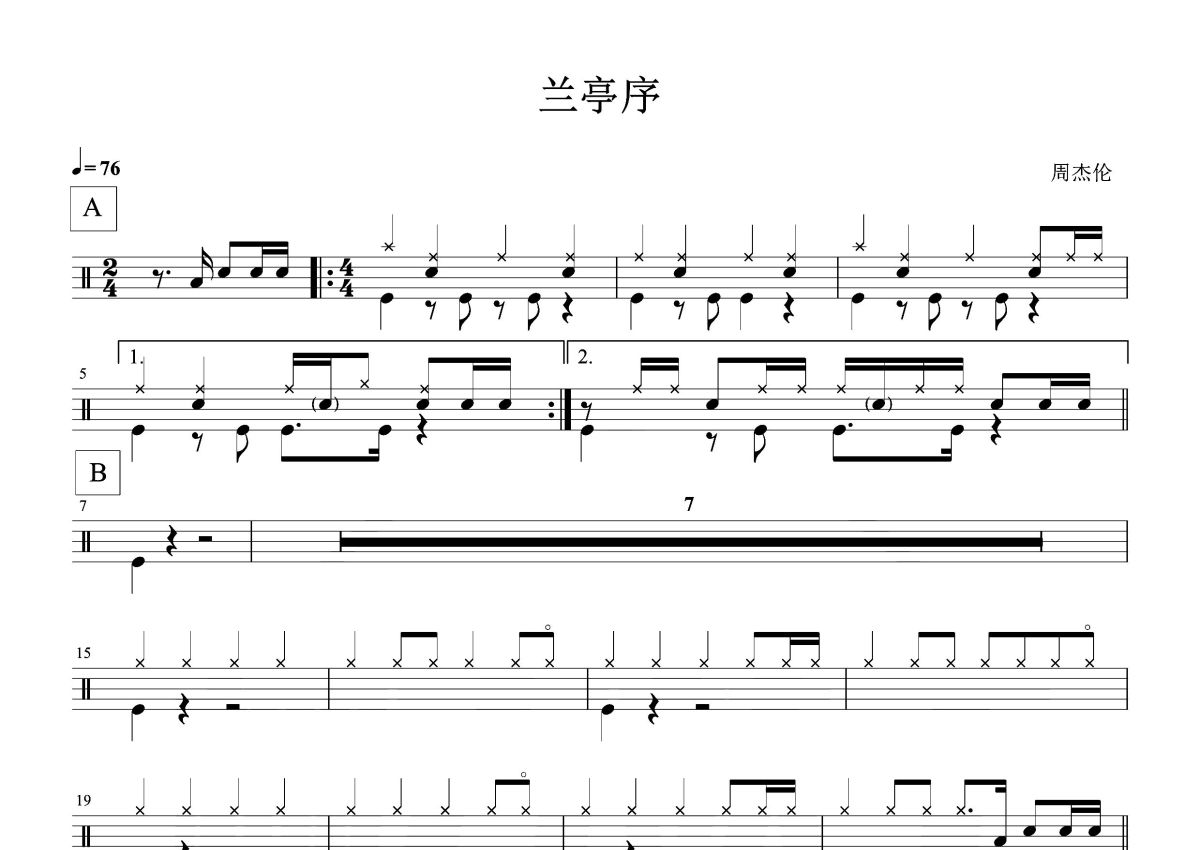 周杰伦《兰亭序》鼓谱 - 架子鼓谱
