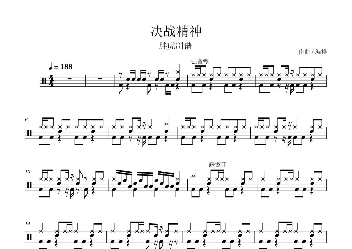 《决战精神》是栗原樱演唱的一首歌曲,这份架子鼓谱共有六张高清图谱,图谱由 @胖虎 编配上传,图谱使用五线谱编配,使用这份决战精神架子鼓谱,你将能够轻松地敲打出这首栗原樱的决战精神,快来尝试吧。原版制谱。