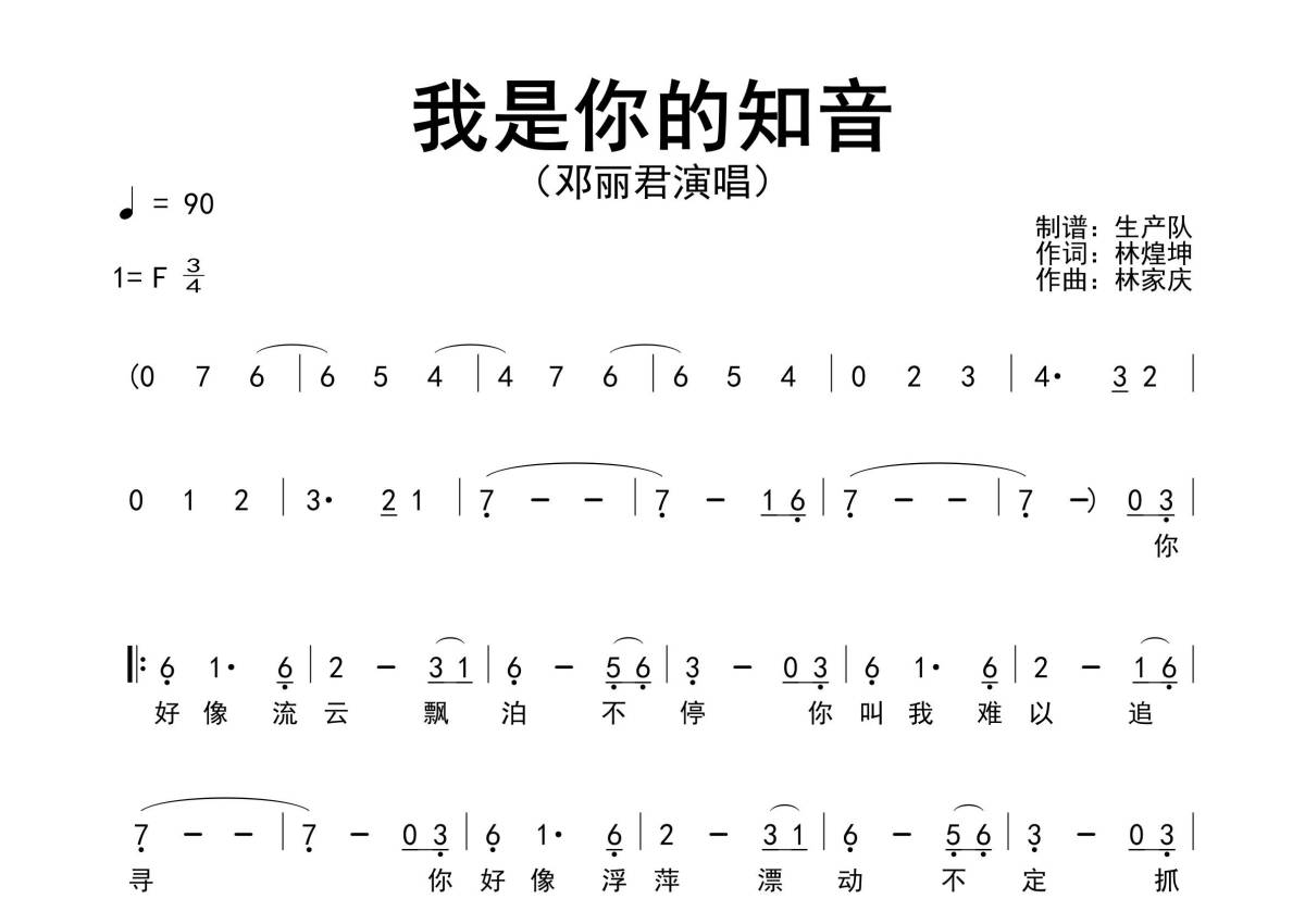 《我是你的知音》是邓丽君演唱的一首歌曲,原版简谱,拍号为3/4拍,歌曲速度为每分钟90拍,这份简谱共有一张高清图谱,图谱由 @生产队 编配上传邓丽君演唱的经典歌曲《我是你的知音》原版简谱。