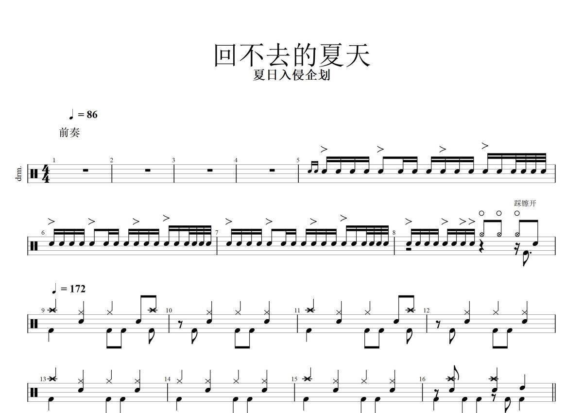 夏日入侵企划《回不去的夏天》鼓谱 - 架子鼓谱
