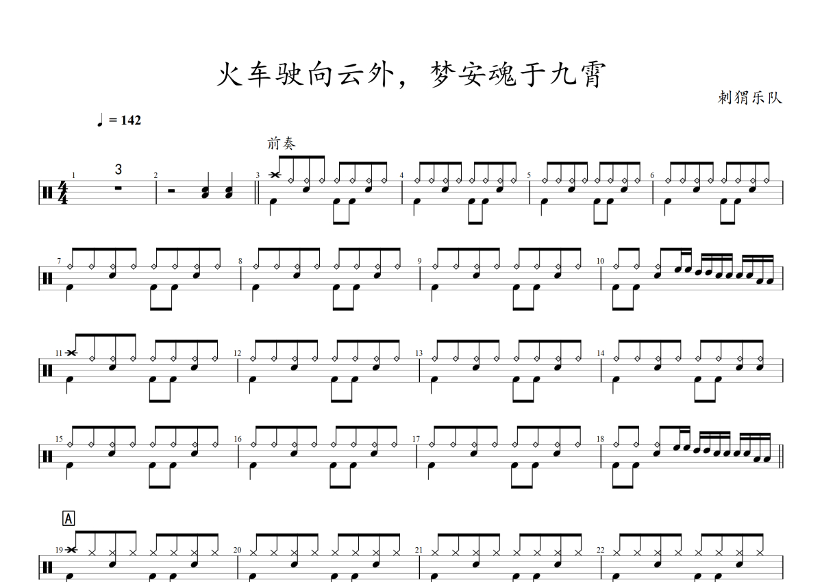 刺猬乐队《火车驶向云外 梦安魂于九霄》架子鼓谱