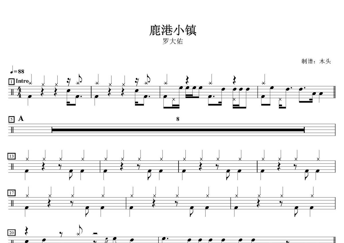 罗大佑《鹿港小镇》鼓谱 - 架子鼓谱