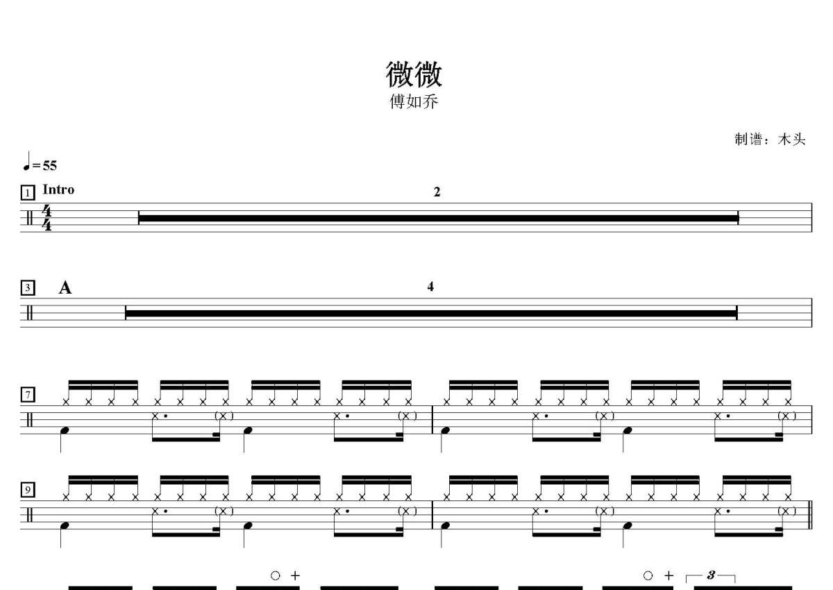 傅如乔《微微》鼓谱 - 架子鼓谱