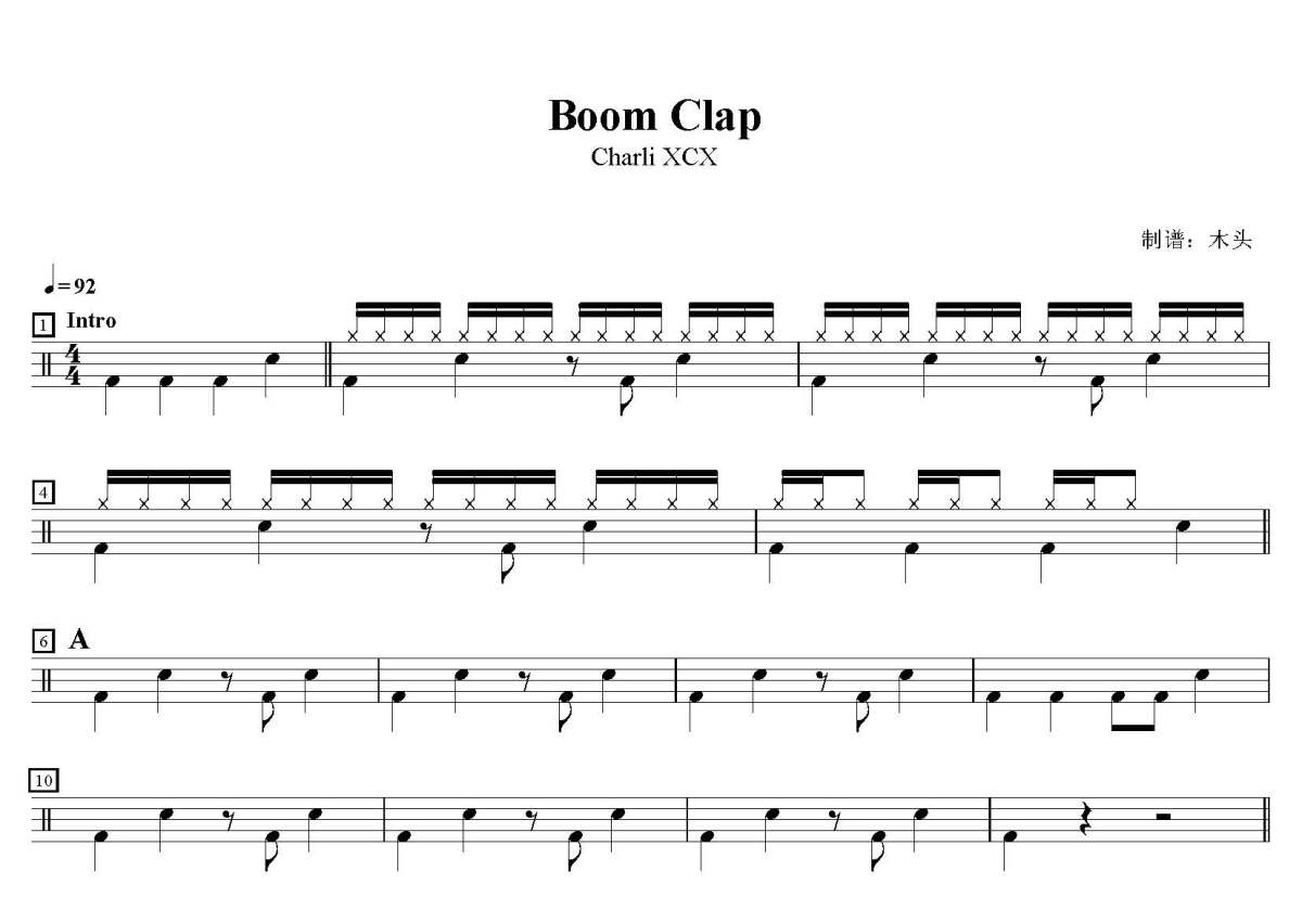 《Boom Clap》是Charli XCX演唱的一首歌曲,这份鼓谱共有两张高清图谱,图谱由 @打鼓谱 编配上传,图谱使用五线谱编配,使用这份Boom Clap架子鼓谱,你将能够轻松地敲打出这首Charli XCX的Boom Clap,快来尝试吧。歌曲名:Boom Clap (From the Motion Picture Das Schicksal ist ein mieser Verräter),歌手名:Charli XCX,专辑名:The Fault In Our Stars (Music From the Motion Picture)。