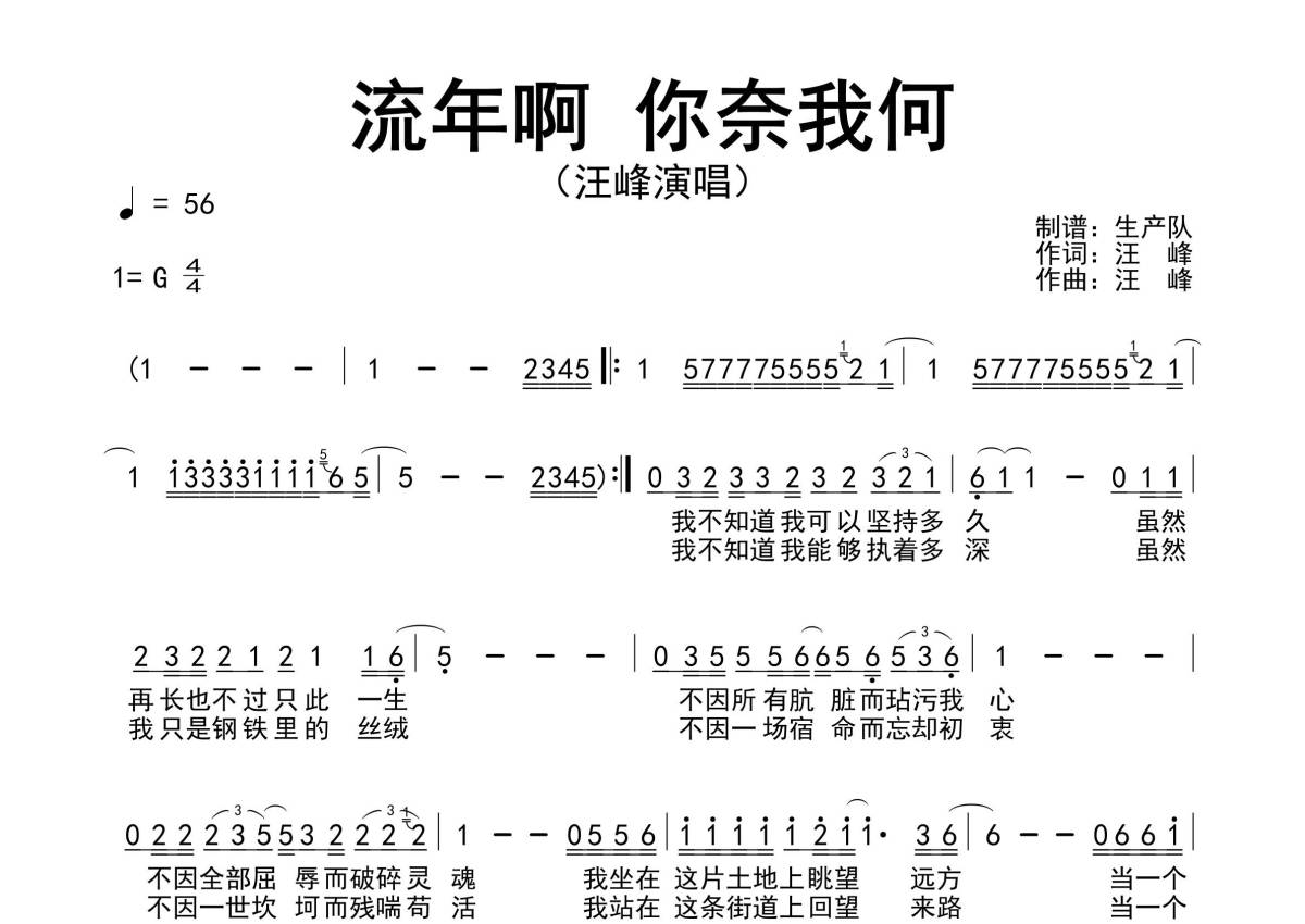 汪峰《流年啊,你奈我何》简谱 - 原版简谱