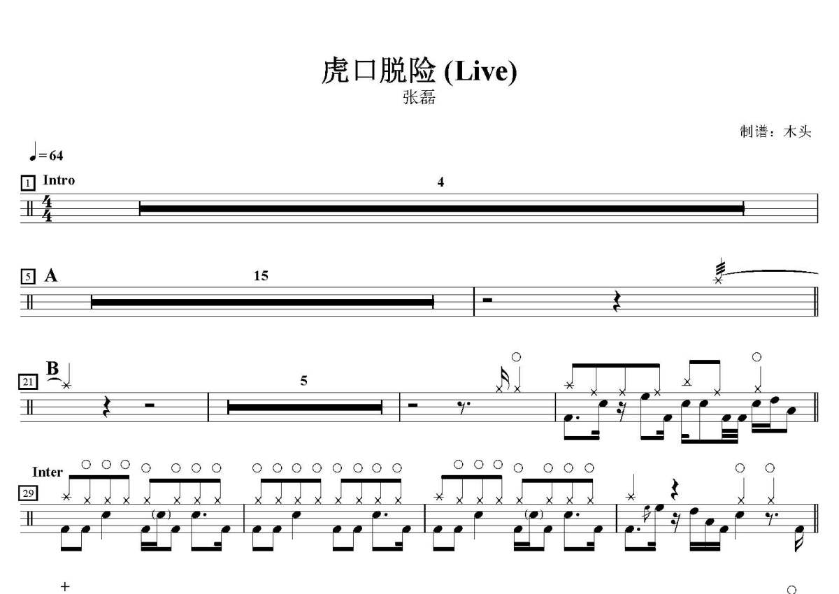 张磊《虎口脱险》鼓谱 - 架子鼓谱 - Live