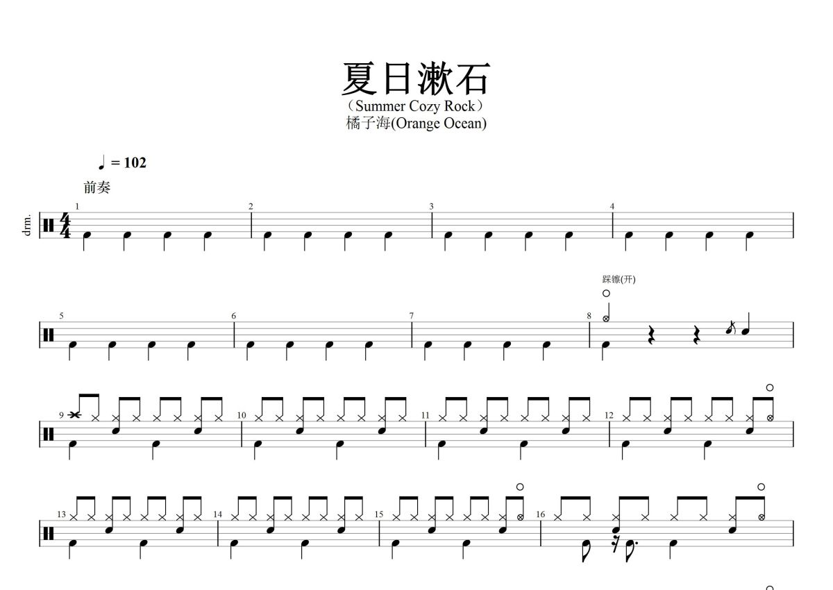 橘子海《夏日漱石》鼓谱 - 架子鼓谱