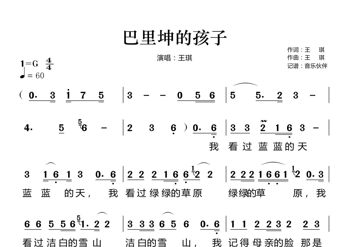 《巴里坤的孩子》是王琪演唱的一首歌曲,这份简谱共有两张高清图谱,图谱由 @音乐伙伴 编配上传。